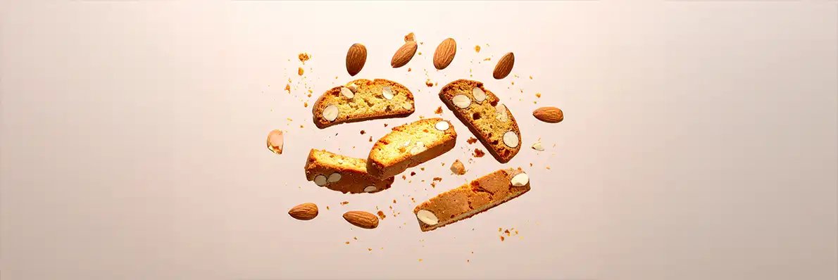 Çifte pişirme tekniğiyle hazırlanan geleneksel biscotti, dışı kıtır, içi dengeli dokusuyla kahve saatlerinize zarif bir eşlik sunuyor.